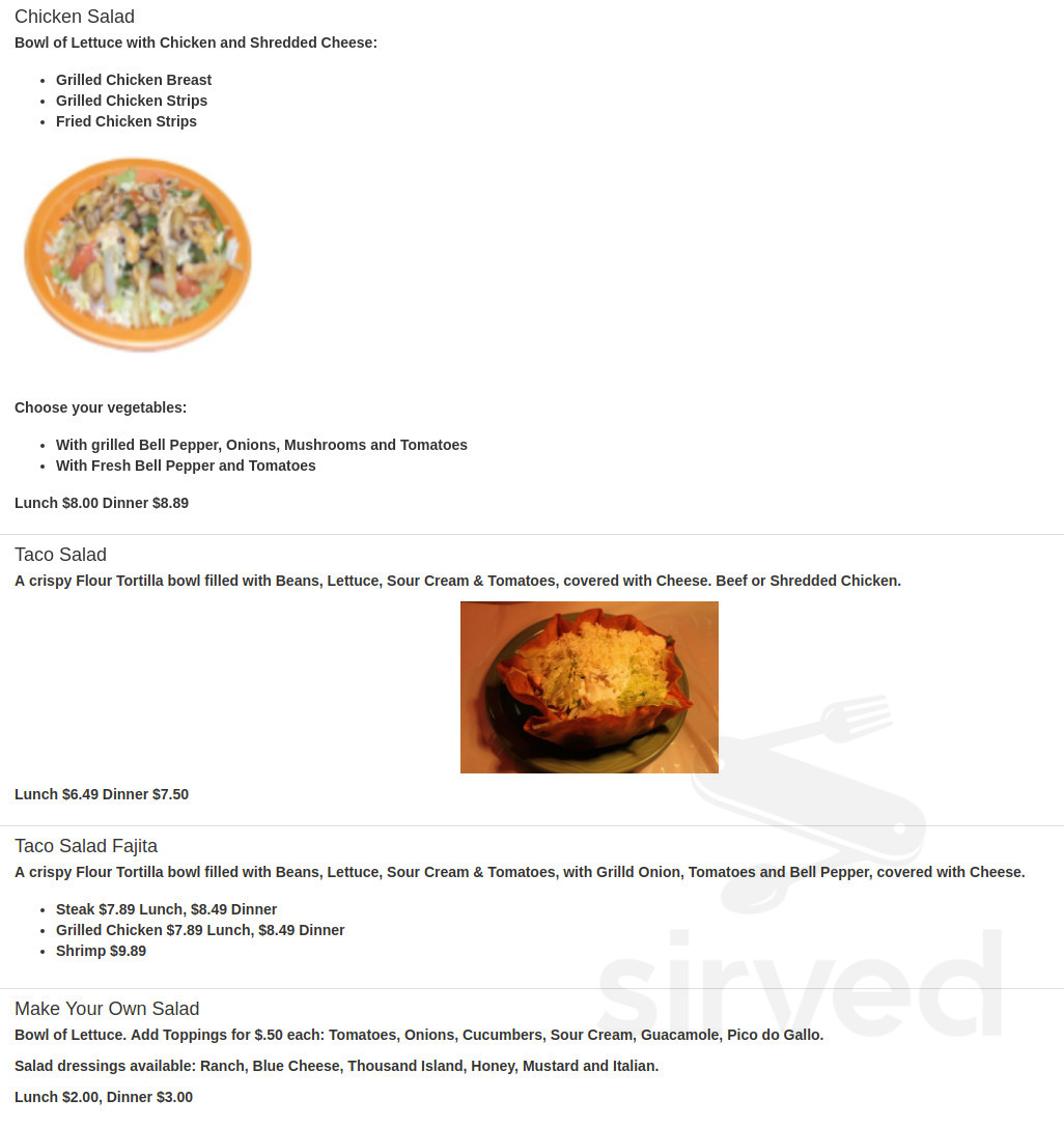 La Paz Mexican Restaurant Menu In Goldsboro North Carolina Usa
